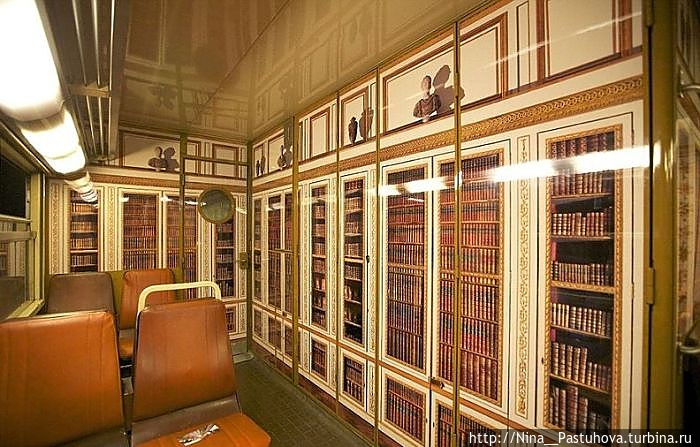 При входе в вагон вы окунетесь в атмосферу настоящего Версаля! Сидя на креслах вагона, вас будет окружать обстановка Людовика XIV, поэтому, вы легко можете почувствовать себя королем или королевой — главное вовремя расстаться с этим чувством.