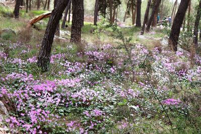 Наверное, цикламены очень любят камни, сосны до ели. Именно в хвойном лесу их цветение столь обильно.
