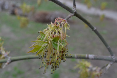 Часть торопящихся листочков уже вырвались на свободу из тесного хранилища почки и изумрудно зеленеют весенней свежестью.
