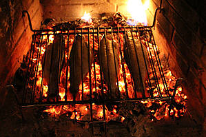 А что может помочь в этом? Конечно же растопленный камин и кот. Ну кот, это в смысле, что бы был дома. Так сегодня и произошло. Вечером я развела огонь в камине, а кота обеспечил муж четырьмя норвежскими форелями, которые были успешно пожарены на углях.