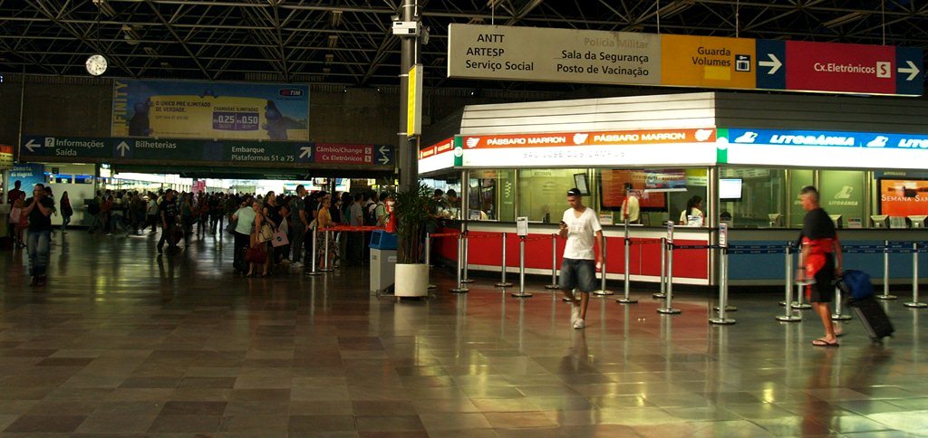 Выезжаю без лишних стрессов в 10 утра, и вскоре после полудня высаживаюсь на гигантском автовокзале Сан-Паулу – «Тиете» terminalrodoviariodotiete.com. . Согласно каким-то источникам это второй автобусный терминал в мире как по размерам, так и по пассажирообороту. При этом в мегаполисе есть ещё пара крупных терминалов, но они обслуживают совсем узкие пучки направлений. Ну а в Куритибу как раз отсюда, рейсов много, и ночных в особенности, места на всех есть. Беру билет на двухэтажную «Комету» отправлением в 23:35. Внизу совсем уж шикарные «спальные» кресла по 3 в ряд, но в этот раз мне пойдёт и верхний салон категории SEMI LEITO.