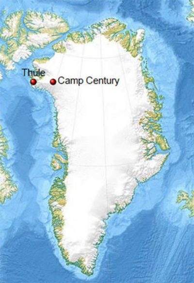 В 1958 году на северо-западе острова на леднике высотой 2000 метров была заложена площадка (Camp Century), объединяющая 21 туннель общей протяженностью 3 км. Располагалась она от Туле в 240 километрах. В 1967 году проект был свёрнут, остатки его сооружений и отходы, включая радиоактивные, были оставлены на месте, поскольку предполагалось, что они будут навечно погребены под слоем снега. Но таяние снегов может привести к экологической катастрофе.