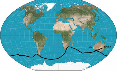 Маршрут перелета с запада на восток: Австралия – Тасманово море – Новая Зеландия – Тихий океан – Южная Америка (Чили – Аргентина) – Фолклендские острова – Атлантический океан – Африка (ЮАР, мыс Доброй Надежды) – Индийский океан и финиш в Австралии. Шар для Конюхова проектирует английская фирма Cameron Balloons. Для нег используются самые новейшие технологии.