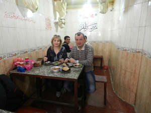 Друзья, на этой фотографии мы с женой сидим в небольшой кафешке старого города в Сане. Однако, что это такое висит у нас над головой?