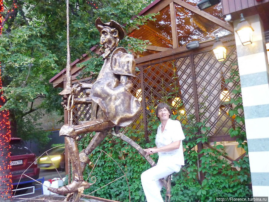 Достопримечательностью номер один Ломоносовского района я думаю можно считать памятник Дон Кихоту на велосипеде, который украшает вход в таверну Ла Манча на улице Кравченко, 12. Памятник поставлен нынешним летом, его авторы — молодые скульпторы. Педали велосипеда можно крутить,правда на момент нашего визита что-то не работало, но должны были исправить.