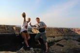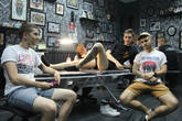 Как я и предполагал, трудности будут не в автостопе (кто бы сомневался!), а в оперативной работе с видео. Аймуви доооооолго пытается съесть видео, потом с трудом их переваривает, потом тратит три часа на конвертацию 20 минут... но после этого надо еще часа три выливать полученный файл в интернет! Так что оккупировали тату-салон и агитируем народ ввести в практику кубинские наколки. А заодно выбираем крышу, где можно будет насладиться видом столицы Украины.