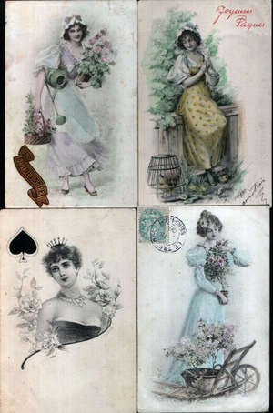 Сейчас трудно себе представить открытку с красивым женским лицом, если это не реклама какой-нибудь косметики. Вот так, просто красоту без подписи "Шанель", или "Лореаль"