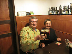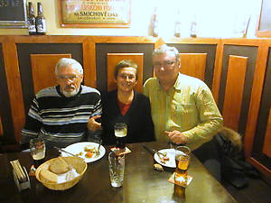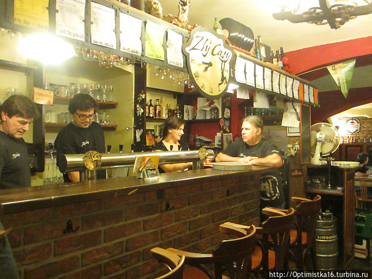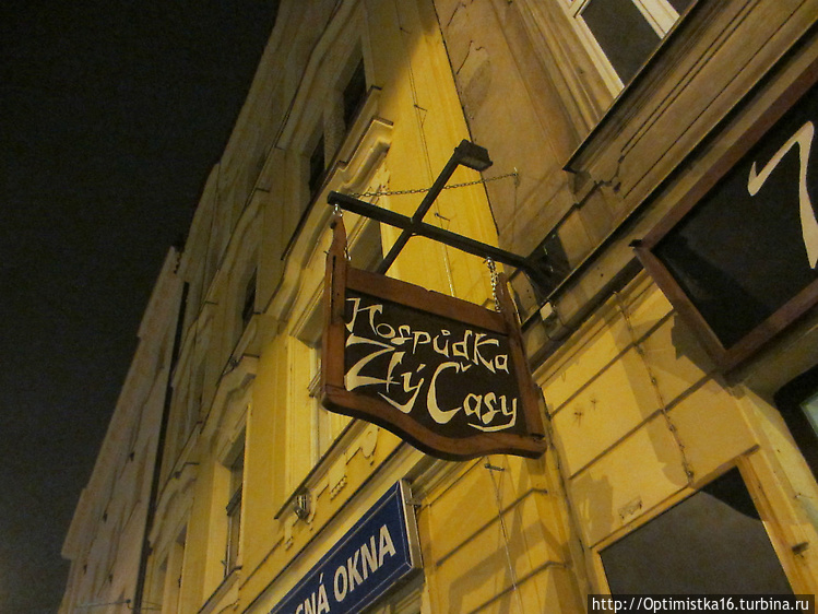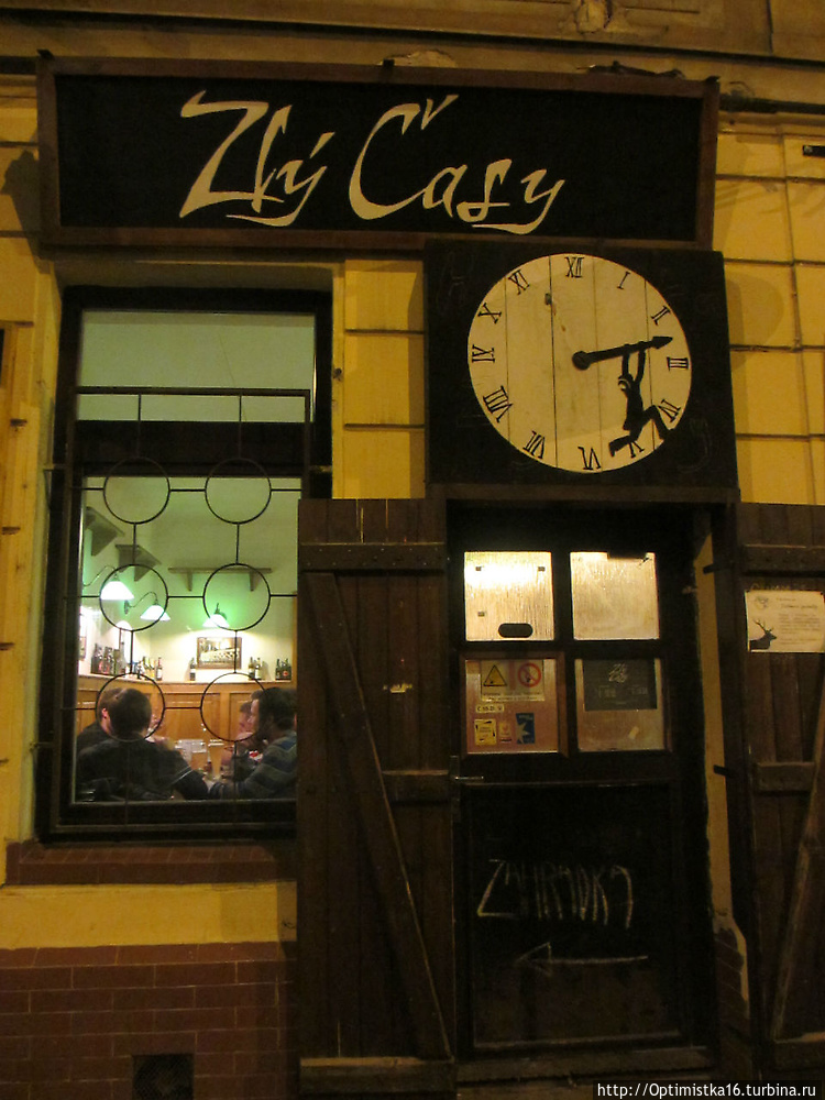 Состав был такой: Виктор и я с мужем. Решено было встретиться в пивном баре. Место встречи, конечно, выбрал Виктор, как эксперт по пиву. (Мы с мужем считаем себя дилетантами в этом вопросе и только набираемся опыта).Неизвестное широкой массе туристов, находящееся вдали от туристических маршрутов, но очень популярное среди местного населения заведение Zlý časy (Злы часы), что означает "Плохие времена", стало "местом встречи, которое изменить нельзя".