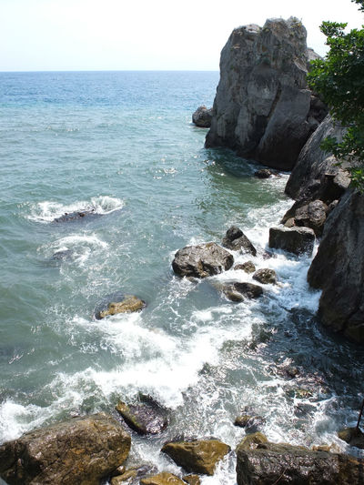На даче Чехова оказалось, что есть сквозной выход к ещё одной небольшой бухточке, где было тенисто, прохладно и безумно красиво!!! Там я просидел на камнях около двух часов, любуясь бушующими волнами, отчаянными купальщиками и купальщицами.