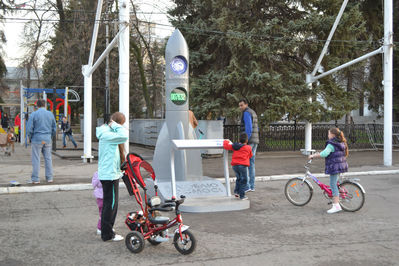 Появилась такая ракета и в Саратове, на Театральной площади. Пусть эта ракета установлена временно, но она стала популярной для детишек, азартно жмущих на кнопку.