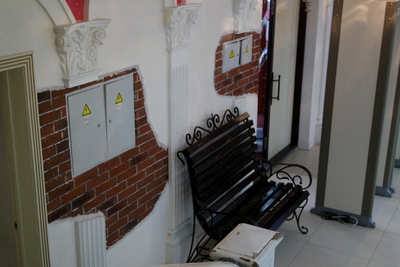Внутреннее оформление интересное. Мы его только снаружи видели, хотя и снаружи он тоже красивый, в известном стиле 1950-х.