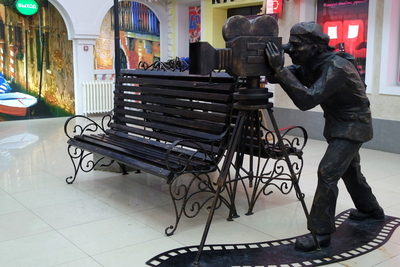 Постройка сталинская. Мне всегда нравятся здания с внутренними и наружными колоннами, белыми лестницами и резными столбиками перил. Млею при виде всего такого. Внутреннее оформление оригинальное и создает атмосферу уюта. Хочется просто сидеть на скамейке рядом с кинооператором, что многие и делают. Заходят и сидят.