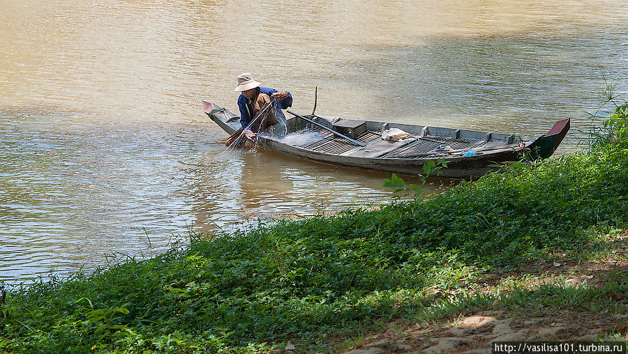 Ну вот, одно дело уже нечаянно сделали, хорошее начало :) Еще в 20 метрах дальше по улице видим плакаты с предложением автобусов по всем возможным направлениям. Спрашиваю, есть ли в Лаос, в Сипандон. Лаос тут произносят как Лао. “Лаос” — это как колонизаторы говорили, а им хочется все переиначить :) Так что Лао. Что такое Сипандон парень не понимает. Неужели нет туда автобусов?! Не верю! Наконец он догадывается, что мне надо “four thousand islans”. Вот это они знают, а “Сипандон” нет, не знают! Автобус есть, по 26 долларов билет. Дорога занимает около 12 часов — с пяти утра до пяти вечера. В билет входит и цена парома на остров Дон Дет. Парень говорит, что некоторые конторы будут вам продавать дорогие билеты на якобы “вип” автобусы, которые быстрее идут — не верить им :) Еще говорит, что поскольку Новый год, билетов может не быть. И автобусов тоже может не быть :) Некоторые перевозчики просто закрываются на праздники. Вот угораздило же нас с этим Новым годом :))) Ладно, может, пока мы смотрим Ангкор, праздники уже и кончатся, не вечно ж им длиться.