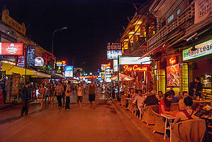 Вернулись в отель, переждали жару. Вечером прогулялись до Pub Street — злачный центр города с кафе и прочими развлечениями. Паб стрит началась как-то очень неожиданно, днем мы до нее оказывается чуть-чуть не дошли. Тю, да город совсем маленький и вообще тут идти всего ничего! А нам-то рассказывали — далеко, далеко!