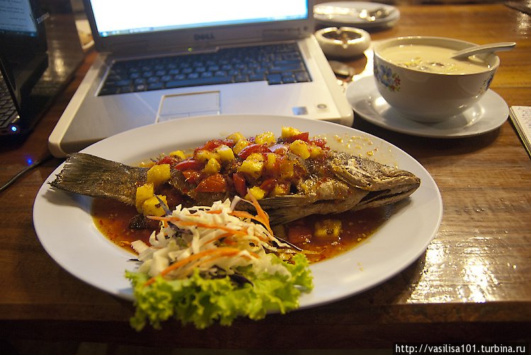 За ужином заказали большую рыбу. Но я наелась перед ней супом и не оценила. Зато выпили с Димой на двоих пять бутылок пива (по 0.65 каждая), я лично была сильно “на всех челнах”. Вдумчиво початилась с друзьями. Хотя и удивлена, что вообще попадала по кнопкам