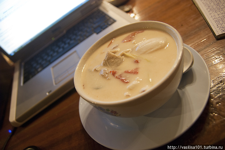 Пошли в кафе, ради интереса заказала крем-суп с шампиньонами. Как и думала — магги с крахмалом. Но грибы честно плавают