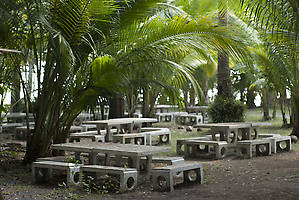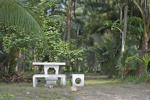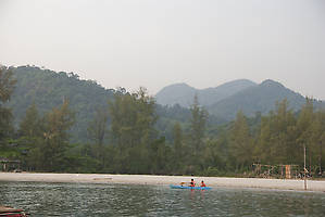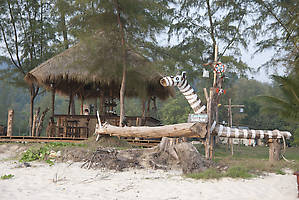 Погуляла вдоль пляжа, нашла несколько цивильных на вид отелей и всякие креативные, типа качелей на берегу и зазывных вывесок на барах. В одном месте стоят большие туристические палатки, сдающиеся в аренду. Дошла до очередной протоки. На другой берег — только на лодке. Вернулась обратно.