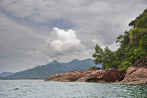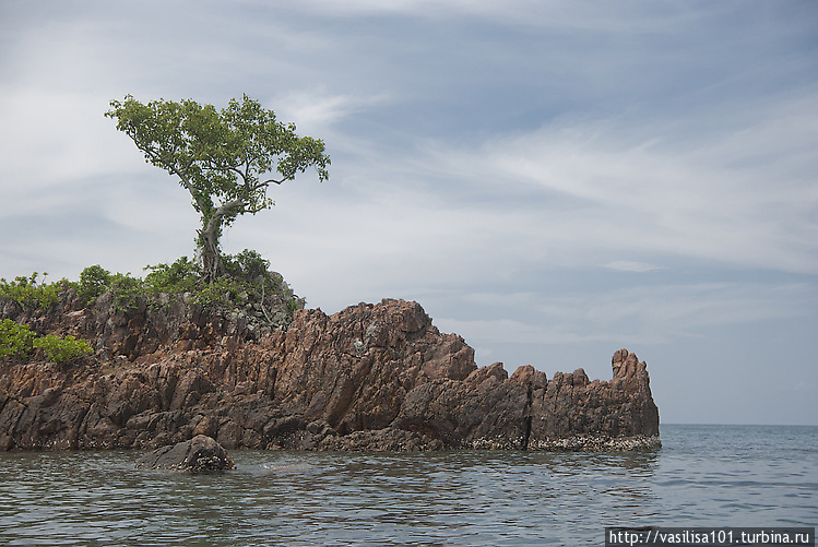 Еще немного поболтались у острова, пошли к Ко Чангу. Вдали виднелся еще один остров с длинным белым пляжем, но очень далеко, не осилим. Грести тяжело Подошли к берегу Ко Чанга, за мысом, глянули как люди живут.