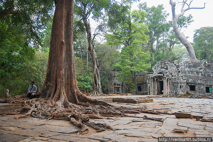 Доехали наконец до Та Прома. Корни Диме нравятся, но меня теперь уже бесят турики. Это такие туристы, которые ходят плотной организованной толпой, с гидом, с бейджами, с видеокамерами, фиксируют каждый свой шаг, создавая на переходах долгие пробки, и фотаются с каждым корнем по сто раз в тупых позах. Ненавижу! :) Вот тихие парные самостоятельные туристы мне нравятся :) Пусть они даже с гидом. Главное, чтобы не устраивали из атмосферных развалин базар :)