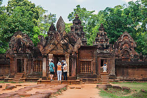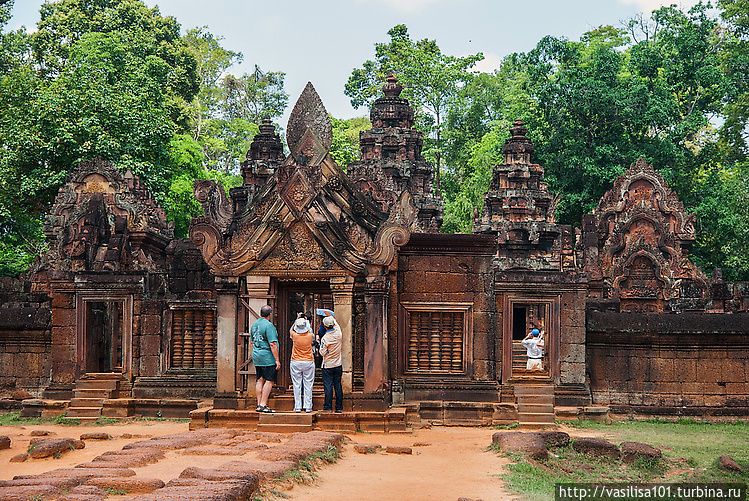 Вышли с другой стороны храма, пройдя его насквозь. Там ждет водитель. Предложил завезти нас по пути в дальний Бантей Срей еще в четыре мелких места. Ну ладно, раз по пути, поехали.