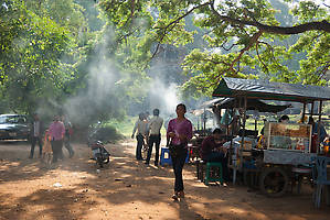 В храме жарко, тени нет совсем. Глянули одним глазом и назад. Кушать очень хочется! Тут вроде есть заведения какие-то. Хоть и не внушают доверия. По пути Диме чуть не продали книжку про Анкор за 5 баксов. Хотя начиналось все с цены в 1000 бат :)