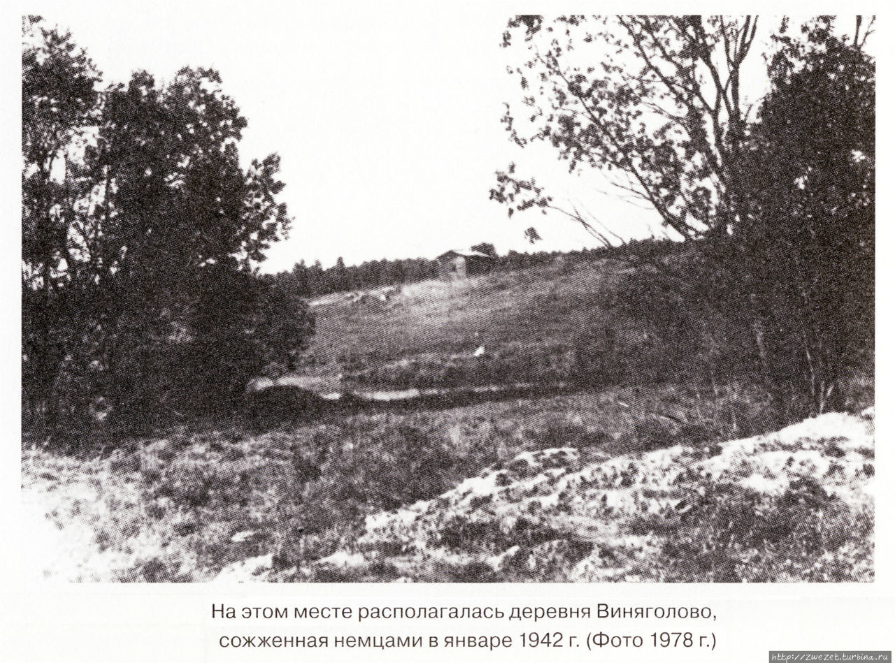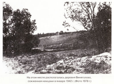 На месте этого урочища существовала деревня Виняголово. Она была отмечена на картах XIX века. Зимой 1942 г фашисты сожгли эту деревню. Именно там Николая Кузьмина, Ивана Голубцова и Петра Петрова видели живыми последний раз.