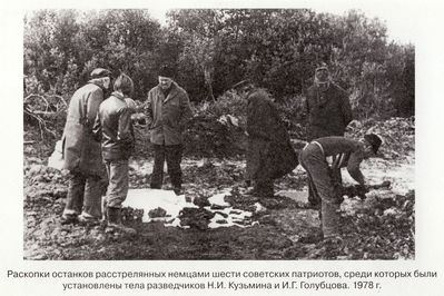 Но ни в этот день, ни в последующие дни группа Николая Кузьмина с задания не вернулась. Непосредственный командир разведчиков после войны начал масштабные поиски пропавших без вести людей, подключив к этому поисковиков-следопытов. И вот в 1978 г в урочище Виняголово, на берегу реки Мга было найдено захоронение шестерых людей.