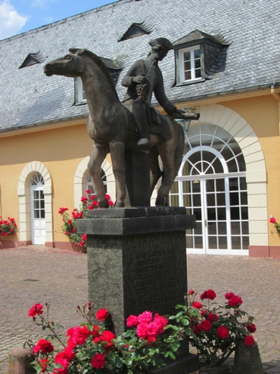 После окончания войны с Наполеоном они были подарены австрийскому канцлеру и дипломату Меттерниху. Он разрушил некоторые монастырские строения и построил замок Йоханнисберг. В гости к Меттерниху захаживал Гёте, любивший гулять по склонам великой немецкой реки, о чем, собственно, нам и сообщает табличка.