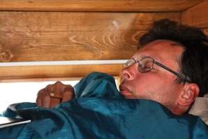 Основная обязанность вахты – безопасное управление кочем. Коч управляется с помощью руля-румпеля (длинной деревянной весьма увесистой палки, приделанной к перу руля) на задней открытой палубе. То есть независимо от погоды, рулевой на вахте – на открытом воздухе. Несложным арифметическим путем можем высчитать, что на долю каждого члена экипажа приходится в сутки примерно 2 вахты или 14-15 часов этой самой работы.