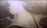 Пресная вода из реки создаёт чёткую цветовую границу в море.