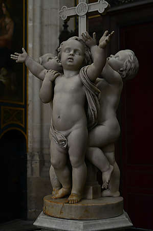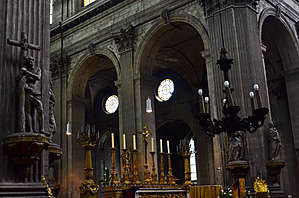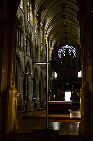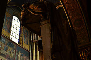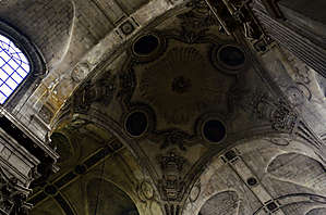 История ни чем особенным не отличается. Меровингскую часовню VI века разрушили норманны в IX веке. В XI веке построили новую церковь, с XIII её перестраивали и наконец-то к XVI она стала пламенеющей готикой. На колокольне Сер-Северен установлен старейший колокол Парижа 1412 года. Но лично мне колокола не интересны. Патрон церкви — Святой Мартин, он считается покровителем путешественников, которые перед дальней дорогой приезжали в храм и прикладывали подкову к барельефу или же прижигали копыто лошади ключом от дверей храма.