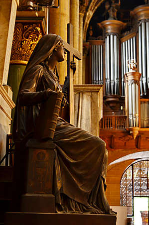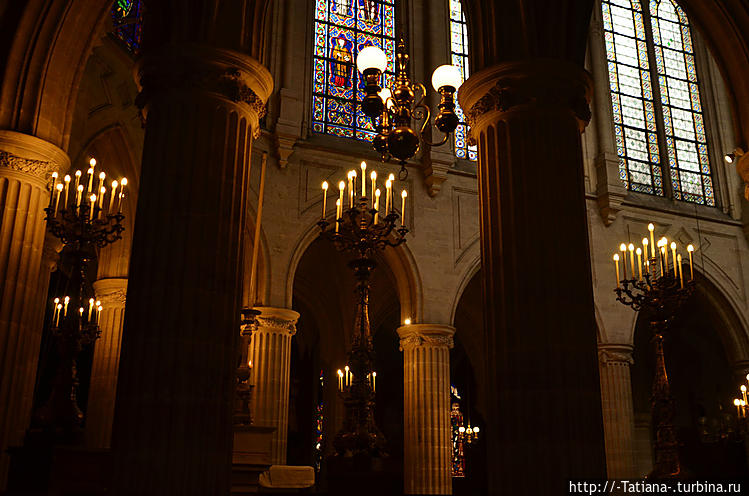 Её тоже украшали к венчанию. Я в этот отпуск вообще много на свадебные приготовления смотрела. Вообще эта церковь какая-то вся «сегодня». И это очень удивительно. Зная, что она одна из самых старых, на уровне ощущений – она «сегодня». Такой вот талант – многовековой слой, не как груз, а как мгновенье. Но может это только я такое увидела. Мне там очень понравилось. Позировала церковь тоже с удовольствием, от фотографирования получила большое удовольствие. Я прочитала несколько описаний её истории, и все они очень интересно написаны. Здесь я не буду переписывать (много – читать устанете, а мало рука не поднимается). Поэтому когда будете готовиться к поездке в Париж, почитайте про Сен-Жермен-де-Пре – не пожалеете. И обязательно туда сходите.