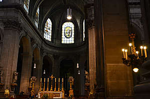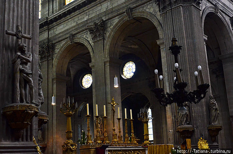 Это была церковь Сен-Сюльпис. Моя ветреная голова пропустила линию розы – французский меридиан и возможность поискать секретные указатели с местоположением Грааля…(«Код да Винчи»), фрески Делакруа, раковины, которые Жюль Верн описывал в «20 тысяч лье под водой»…