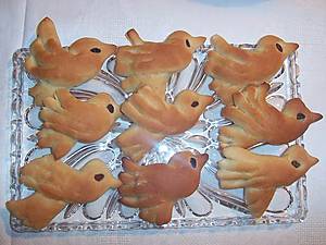 И на праздник обычно пекли "жаворонков", в большинстве случаев с распростертыми крылышками, как бы летящих, и с хохолками. Птичек раздавали детям, и те с криком и звонким смехом бежали закликать жаворонков, а с ними и весну.