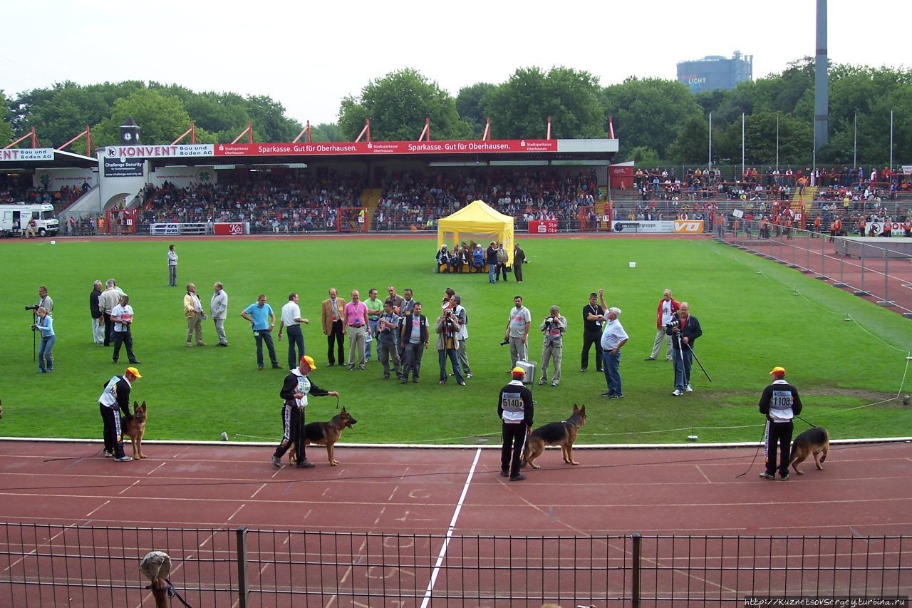 Наутро, позавтракав в отеле и выполнив все положенные с собаками процедуры, мы направились на стадион Оберхаузена. В десять утра начался показ, так называемых, племенных групп. Для специалистов кинологов, особенно для заводчиков собак, это очень важное мероприятие. Оно заключается в том, что представленные в этом конкурсе кобели, должны продемонстрировать свое потомство, то есть, своих детей. Судьи и зрители оценивают качество этого потомства. Обычно вместе отцом-производителем на поле стадиона выходят от десяти до шестидесяти его потомков. Как правило, отцы-производители – это кобели отборного класса, завоевавшие этот титул на прошлогоднем Зигере, а также кобели, претендующие на получение оценки «отборно» на текущем Зигере.