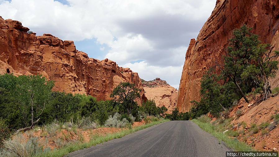 Американская захолустная дорога. Жилья вокруг нет. Едем по дну каньона. Кругом КРАСОТА!!! (Центральная Юта)