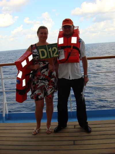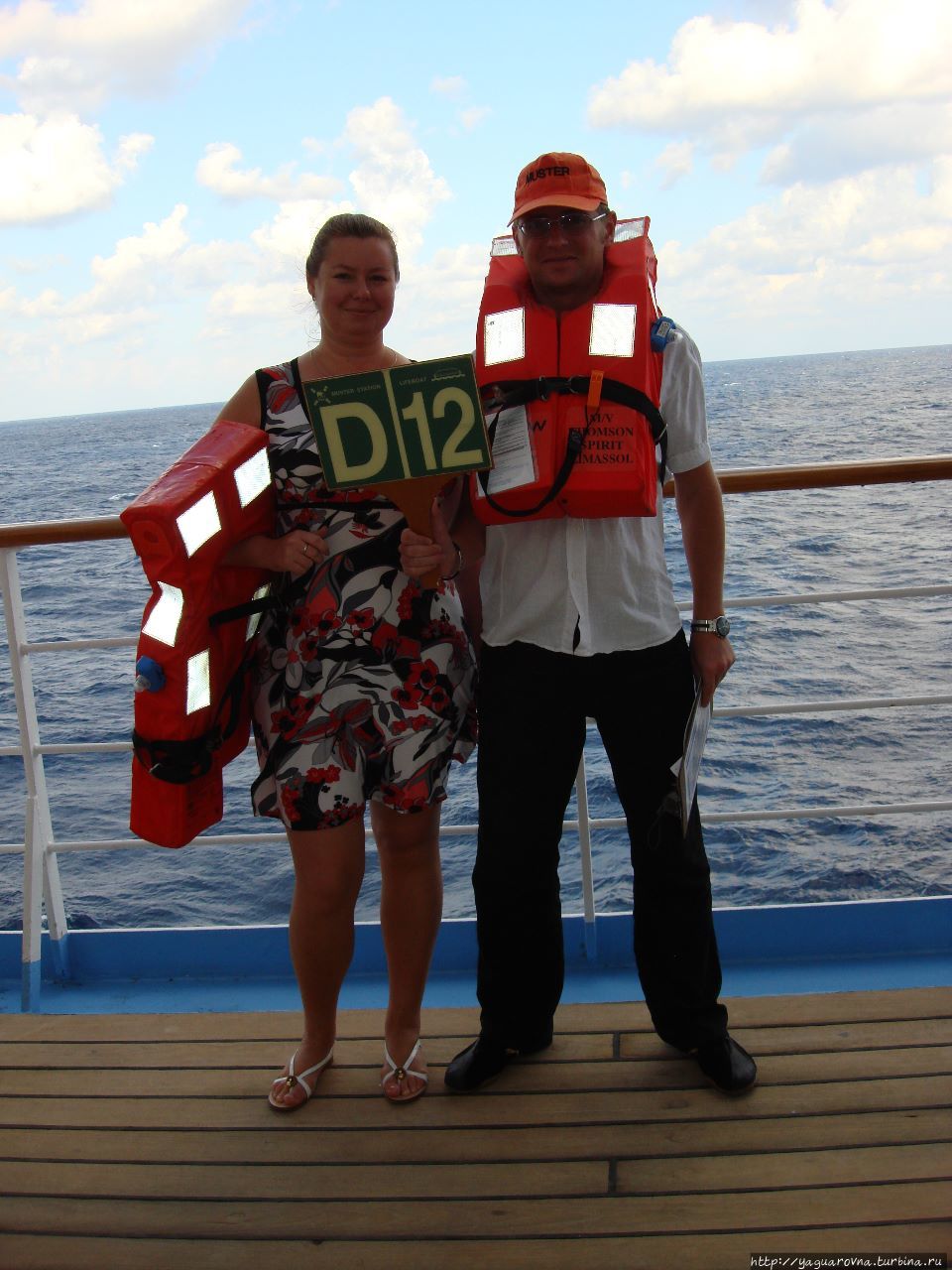 Нашлись! Сели у нужной цифры, отдыхаем. Но это ж ноги утомились, а голове-то просто так скучно. Достаю часы повертеть, к ним инструкция приложена, малюсенькая такая книжица, но на русском языке есть пара страничек. Читаю: выдвиньте колесико, крутите его до тех пор, пока не увидите нужную дату… Это ж сколько надо принять внутрь, что бы здесь дату разглядеть? – был мой вопрос обществу. Наш хохот разбудил мирных граждан. Сидящая по соседству женщина встрепенулась: вы откуда? А я здесь уже три года живу, вот теперь в Малагу лечу. А во сколько у вас самолет? Странно, и наш в это же время… А вы точно у этого выхода ждете, потому что мы-то восемь раз по табло сверились – от этого номера на Майорку рейс! Она нам опять: нет-нет, я летаю часто и все время отсюда. Мы уже стали обсуждать до чего дошел прогресс: на одном самолете до Малаги и Майорки, это ж надо! Но посоветовали все-таки свериться с расписанием… да, опыт – хорошо, а бдительность – лучше. В Малагу из другого места отправлялись! Вот бы она без нас попала…Ладно, до Майорки добрались, и двумя машинами направились в порт. На этот раз сначала – круиз! Название у него такое красивое было – «Золотая Ривьера»! Круизная компания – прежняя, Thomson, только кораблик другой, под названием Destiny. Размещались по каютам следующим образом: одна четырехместная, и одна двухместная, на одной палубе, без окошек (их еще внутренними зовут). Как и в первый раз обошли судно, посмотрели что где. Наутро – тревога. Шлюпки у нас разные были – в соответствии с каютами, так что по окончании встретились, зафиксировались с новобранцами.. Потом – свободное время до капитана. Устроили свою фотосессию. Это мы когда после первого раза подсчитали, сколько на фотографии ухнули – ужаснулись. Зато портфолио вышло на славу! Однако выводы сделаны, решили брать только исключительно удачные снимки. Но сами себя-то – это сколько хошь!