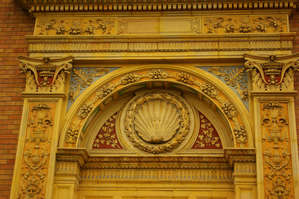 Теплыми золотистыми тонами были окрашены узоры на стенах