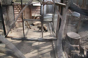 В одном из вольеров мы встретили раненую волчицу. Надпись на вольере гласила, что ей оказывается необходимая медицинская помощь, и рану она получила в драке с другой самкой за самца. В результате раненую волчицу отсадили в отдельный вольер, а ее соперница осталась с самцом.