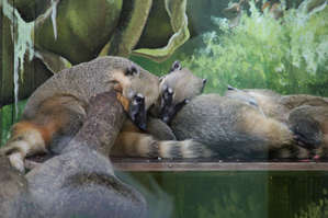 У мангустов тоже пополнение в семействе. Малыш родился в конце марта, но уже пробует мясо.