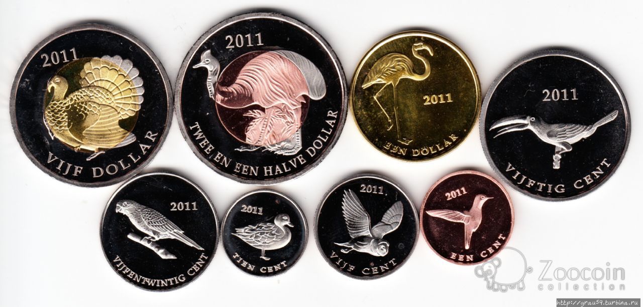 Набор из 8 монет "Птицы".