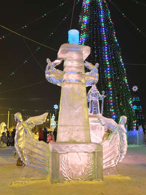 Раньше у нас в городе каждый район организовывал ледяные городки и т.н. "районные ёлки". Времена уже не те, бюджеты дифицитные, но кое-кто может позволить себе городок с ёлочками)))