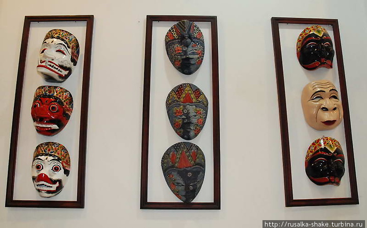 Часто они имеют совершенно “человеческий” облик, с волосами, усами, лентами и настоящими серьгами. Особенно распространены маски Шивы, богини риса Дэви Шри и некоторых других персонажей местной мифологии. Однако две главные маски принадлежат доброму существу Барону и его противнице злой ведьме Рангде. Эти персонажи считаются священными, так что далеко не каждый мастер острова Бали берет на себя смелость их изобразить.Т е, кто особо не верит в мистику, вполне могут позволить себе покупать маски, не задумываясь о том, злой это дух или добрый, положительный или отрицательный герой народного эпоса. Тем же, кто предпочитает не дразнить высшие силы, для начала лучше разобраться, кого вы собираешься привезти домой с острова Бали. Отличить злого духа от доброго не так уж и сложно, поскольку образ персонажа создается традиционными внешними средствами, зачастую условными. У злых духов обычно красное лицо с грубыми чертами и выпученными глазами, длинные, мясистые носы, выпяченные губы и торчащие клыки, у некоторых львиная грива. И вообще поосторожнее с красным – на Бали это цвет злых персонажей.