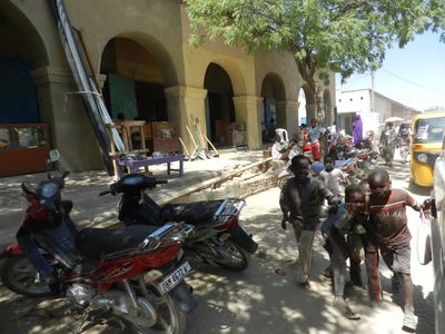 В центре на узких улочках часто возникают пробки. Первую остановку мы сделали на базаре. Ещё не успев выйти из машины, я заметил колоритную торговку с целым тазом сандалий на голове и спросил разрешения, дабы сфотографировать. Красотка дала добро.В воздухе ещё звенел щелчок от фотоаппарата, а передо мной уже нарисовалась полисменша, попросив, фототехнику убрать. Во многих Африканских городах действует запрет на фотосъёмку. Я подчинился, после чего снимал меньше и украдкой.