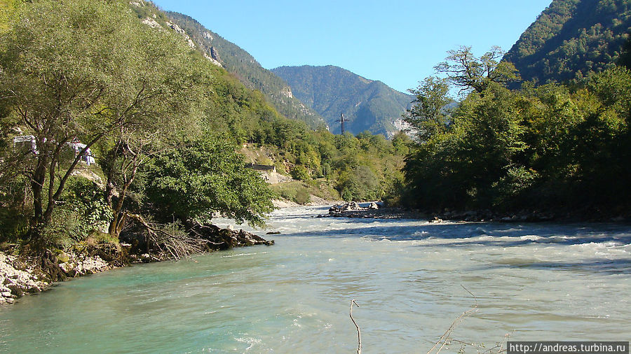 Рядом с впадением реки Лашипсе находятся развалины бывшей приемной дачи Сталина и Молочный водопад.