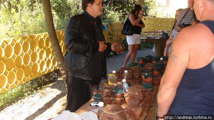 Следующая остановка по пути на образцово-показательной пасеке. Пасечник Андрей прочитал лекцию о пользе мёда, производимого местной пчелой "абхазяночкой" и продемонстрировал наглядно, как определяется подлинность мёда. Конечно же была бесплатная дегустация мёда и продажа очередной партии туристам по завышенной цене.