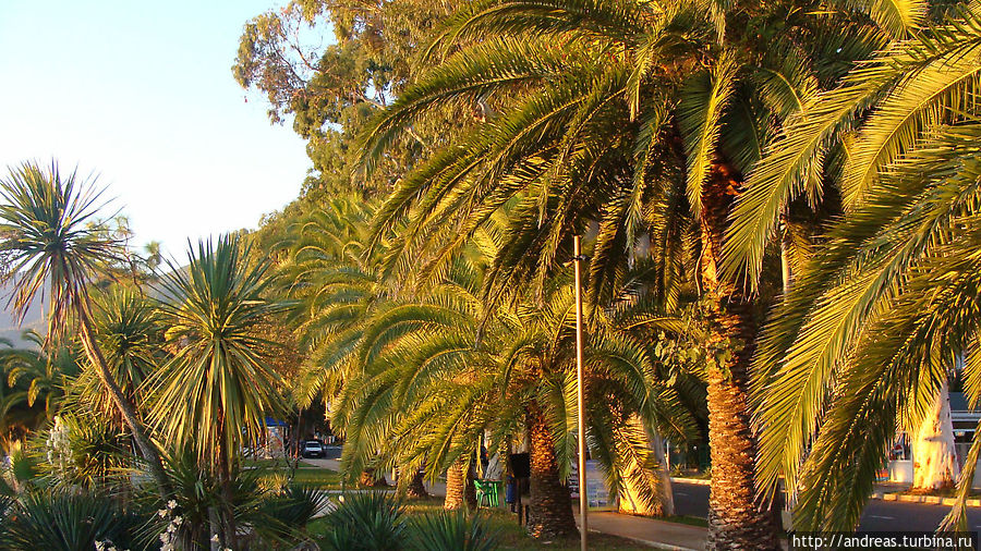 Легко добрался попутной машиной до известного курортного города Гагры. Сразу же пошёл гулять среди многочисленных пальм и эвкалиптов. Потрясающее зрелище!
