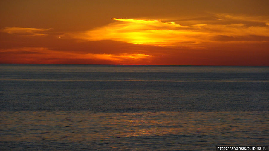 Палатку поставил на тёплом песке прямо на пляже. Днём было жарко до 30, но и вечером стояла спокойная тихая погода. Я покупался в море и долго сидел на берегу, любуясь красивым закатом.