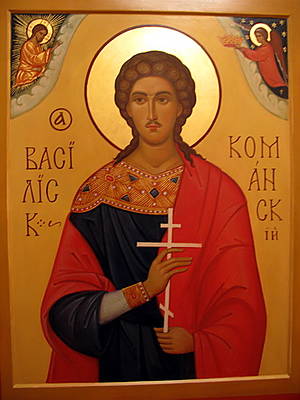Святой Василиск был христианским проповедником, в 308 году был приговорён к смертной казни римлянами. По легенде он был брошен в темницу, где со слезами просил Господа послать ему венец мучения. И Господь предсказал ему мученическую смерть и погребение в Команах.