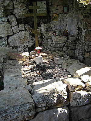 От источника начинается крутая тропинка, ведущая вверх к небольшому деревянному храму(часовне) христианского мученика Святого Василиска. Он возведен на средства от частных пожертвований на месте более древнего храма, построенного на месте захоронения святого мученика. Двери его всегда открыты.
